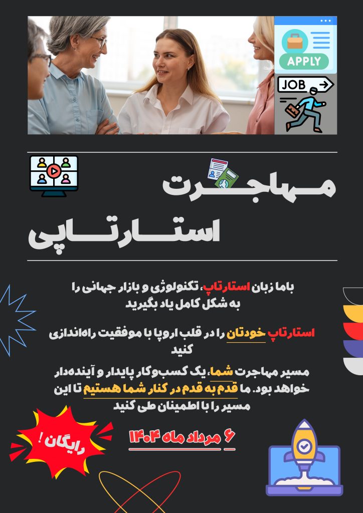در این وبینار از متخصصینی بیاموزید که تجربه موفق و عملی در راهاندازی استارتاپ در اروپا دارند. این همراهی پس از مهاجرت نیز ادامه خواهد داشت تا موفقیت شما تضمین شود.